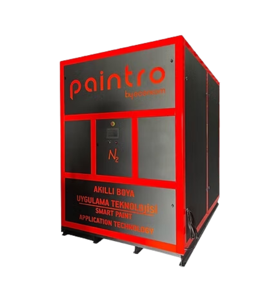 Paintro Akıllı Boya Uygulama Teknolojisi mevcut boyahane hattınızda veya boya kabinlerinizde hiçbir değişiklik yapmadan boya uygulamanızı nitrojenle yapmanızı sağlar. Nitrojen mevcut havaya göre daha hafif ve kararlı bir gaz olduğundan dolayı işletmenize sayısız avantaj sağlar;